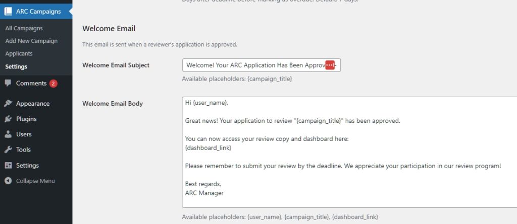 The “Welcome Email” is the first interaction a reviewer has with your system after being approved. It should contain the link to their dashboard so they can download the book.